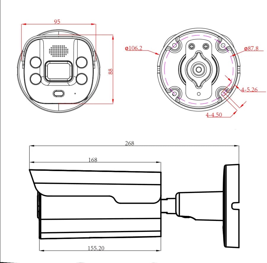 Srdcem kamery je 1/2.8 SONY® STARVIS™ BSI CMOS WDR. STARVIS je Sony vlajková řada čipů optimalizovaná pro bezpečnostní kamery. Proti běžným CMOS má 2–3× vyšší citlivost v modrofialovém i infračerveném spektru, což v praxi znamená čitelný barevný obraz při osvětlení pouhých 0.003 Lux — to je hranice, kde lidské oko přestává rozlišovat barvy.